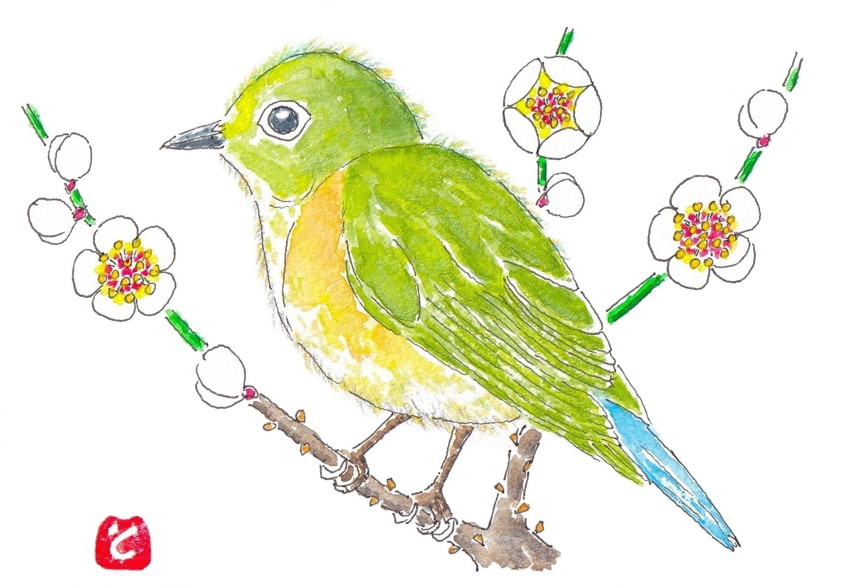 - 『梅が咲いてるなぁ~』と近づくと❝めじろ❞がとまってました。小学生の時❝めじろ❞を飼ってたので嬉しくみました。小学校から帰ると、餌作りのため近所の八百屋さんへ『大根の葉っぱもらえませんか?』と・いつも取って置いてくれてましたが、時々「ごめんね!今日はないのよ!」という日も… そんな日には、おこづかいで、ほうれん草を買いました。自分のおやつが😢…すり鉢で葉っぱをすり、きな粉を混ぜ水でねり、餌を作りました。😊懐かしく思い出しながら描いたら、飼ってた🐥に似てました。