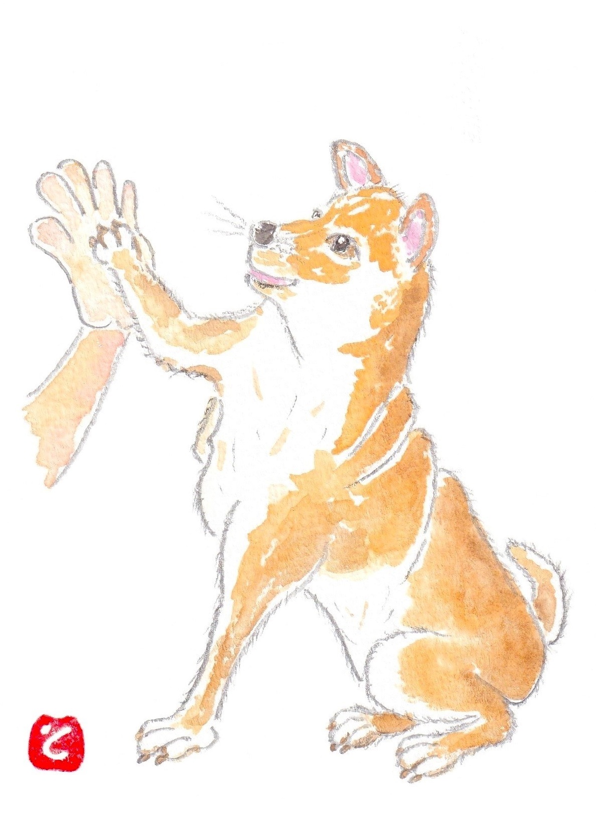 - 🐕柴犬さん◎今日は、少し遠くの公園まで歩くチャレンジをしてみよう!と訪れたら… 飼い主さんと🤚ハイタッチをしてる🐕わんちゃんに出会えました。 「🤚ハイタッチかわいいなぁ~😊」と描いてみました! 私にも🤚タッチしてくれました!とても人懐っこい🐕柴犬さんでした。会えて良かったぁ~😊