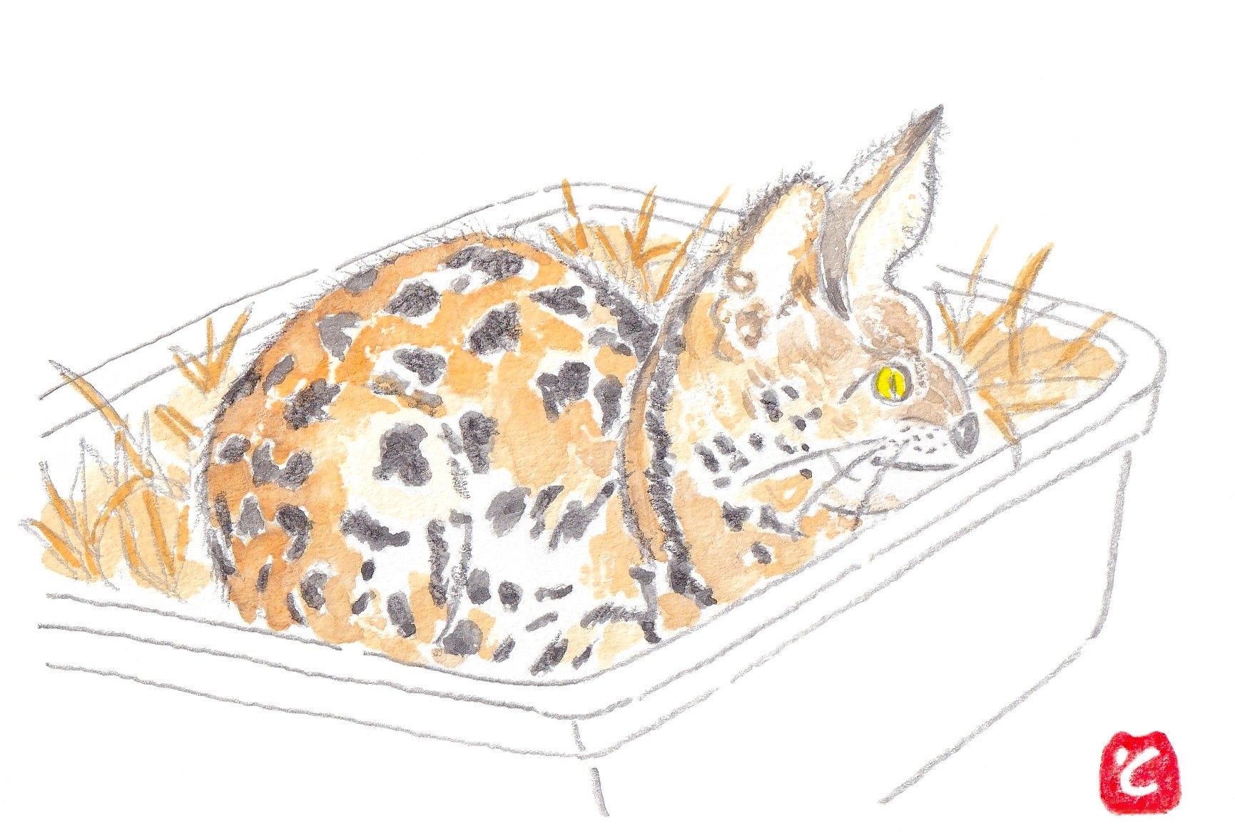 - 🐱サーバルキャット◎冬の寒い日、京都市動物園を訪れてみました。 🐱サーバルキャットのところへ行くと… 暖かい部屋で、ワラが敷き詰められたカゴのなか 🐱が『今日は、寒いのでこんな感じです!』と言ってるみたいでした😊 🐱昨年、東京の多摩動物公園から、やって来たそうです! はじめまして こんにちは😊
